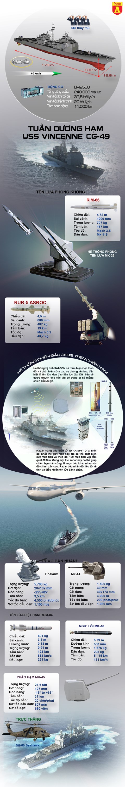 Ngày 3/7/1988, cách đây 29 năm, máy bay chở khách Airbus A-300 203 B2 của Hãng hàng không Iran đã bị tàu tuần dương hạm USS Vincenne (CG-49) bắn nhầm vì tưởng là máy bay F-14 của Iran. Thảm kịch này đã khiến 274 hành khách cùng 16 thành viên phi hành đoàn thiệt mạng.