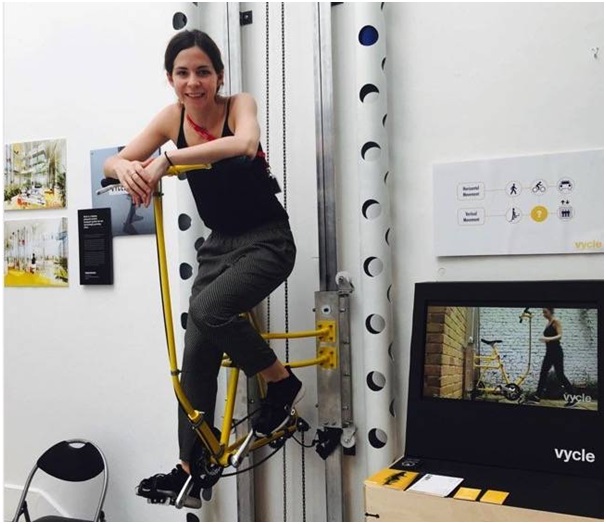 Hệ thống thang máy “xe đạp” này có tên là Vycle, được phát triển bởi Elena Larriba, một sinh viên tốt nghiệp Đại học Nghệ thuật Hoàng gia Anh và kỹ sư Jon Garcia. Họ đem tới cho chúng ta một cái thang máy chạy bằng sức người hoạt động giống như một chiếc xe đạp.