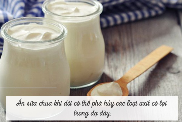 Dùng sữa chua vào lúc này giúp đẩy lùi cảm giác đói, tuy nhiên chúng lại không hề có lợi cho sức khỏe chút nào. Thói quen ăn sữa chua vào lúc bụng rỗng còn có thể gây tổn thương dạ dày và những vấn đề về tiêu hóa. Do đó, để tránh gây phản tác dụng bạn nên tránh dùng loại thực phẩm này khi đang đói.