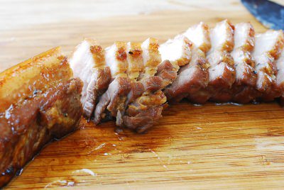 - Thái thịt thành miếng mỏng và xếp ra đĩa, nếu còn nước sốt thì rưới đều lên thịt.
