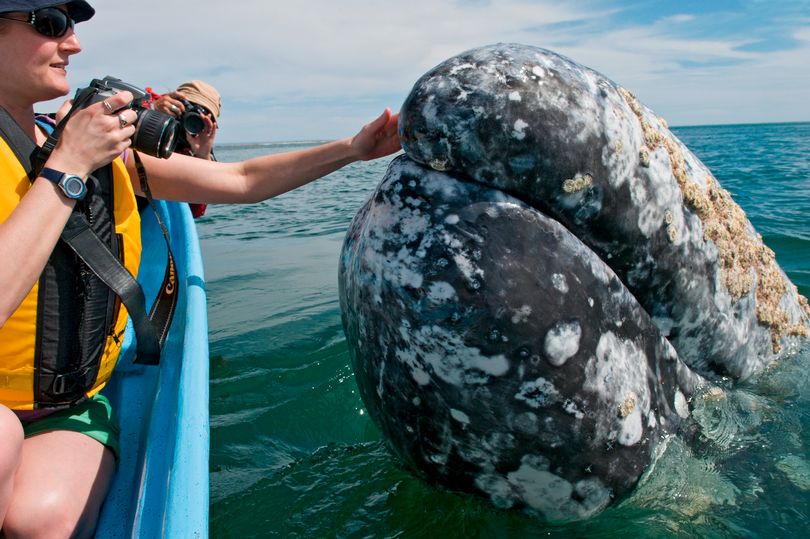 Cá voi xám là loài vật khá bình tĩnh và thường đến gần thuyền của du khách với mong muốn được vuốt ve.