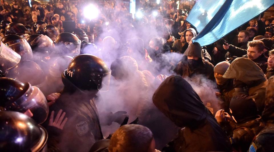 T́nh trạng bất ổn lan rộng khắp các khu dân cư và cả trong nội bộ chính phủ. Người biểu t́nh xếp rào chắn trên đường phố v́ chính phủ quyết định tạm ngừng đàm phán với EU, trước sức ép từ Nga.