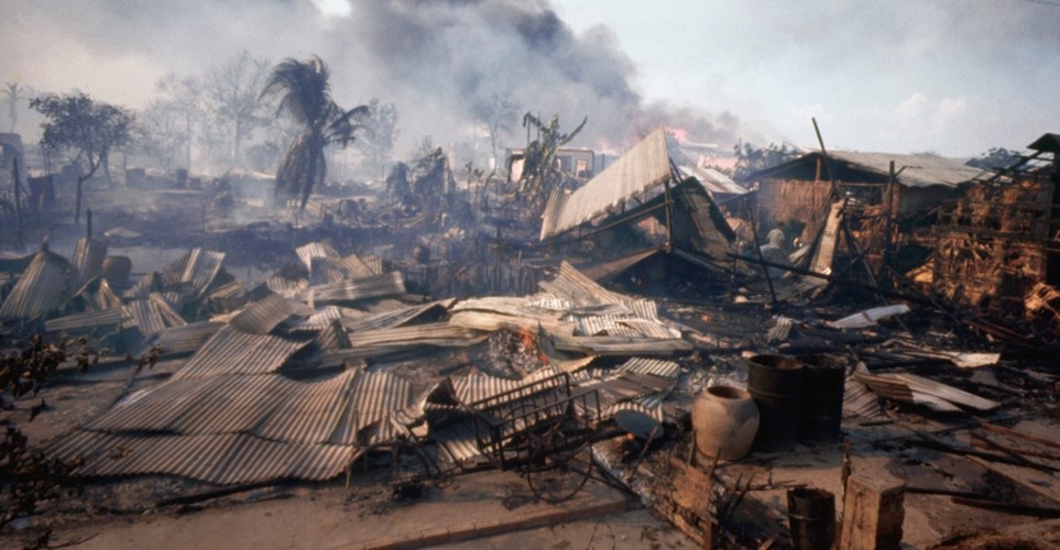 Cuộc chiến nổ ra ngay giữa thành phố Sài Gòn lớn nhất Nam Việt Nam, nơi mà thời Pháp đã được mệnh danh là "Hòn Ngọc Viễn Đông". Cuộc chiến diễn ra ngay giữa phố xá với nhà cửa san xát và những người dân thường chạy loạn ngay giữa chiến trường đã khiến nước Mỹ sửng sốt. Những người dân Mỹ tiến bộ với tinh thần bác ái, nhân hậu không thể tin được những đồng tiền đóng thuế của mình lại được sử dụng vào một cuộc chiến tranh tàn bạo và phi nghĩa như vậy. Nguồn ảnh: Consort.