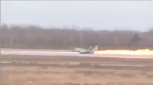Đoạn video cho thấy chiếc MiG-29 đang tăng tốc cất cánh thì ngọn lửa bốc lên từ động cơ. Càng hạ cánh của tiêm kích sau đó bị sập khiến nó bị lật nghiêng trên đường băng.