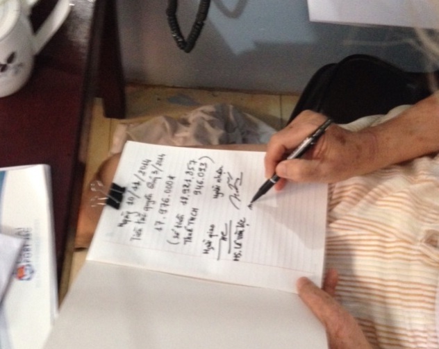 Nhạc sỹ Nguyễn Văn Tý ký nhận tiền tác quyền.