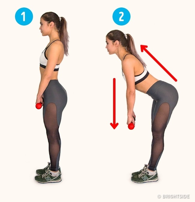 - Đứng thẳng lưng, 2 chân dang rộng hơn vai, 2 tay nắm vào một vật nặng, đặt chính giữa.