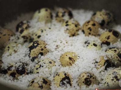 - Bước 3: Xếp tất cả trứng vào nồi, và rắc nốt phần muối còn lại lên phía trên mặt trứng. Sau đó, bạn đun nhỏ lửa khoảng 10 phút thì tắt bếp. Đợi khoảng 5 phút, các bạn tiếp tục vặn nhỏ lửa đun thêm 5 phút là trứng chín.