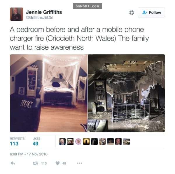 ▼ Những vụ nổ khi sạc điện thoại không còn là lần 1, lần 2. Trước đây trang Facebook của sở cứu hỏa này cũng đăng lên hình ảnh căn phòng của một cô bé trước và sau khi vụ nổ xảy ra đã gây chấn động trong cộng đồng mạng.