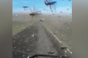 Một khu vực thuộc Nga đang hứng chịu dịch châu chấu. Chúng bay vây kín xe hơi di chuyển trên đường đến nỗi tài xế phải dừng xe. Xem video, chúng ta tưởng chiếc xe đang di chuyển trong điều kiện bão cát.