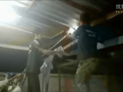 Lực lượng chức năng nhanh chóng có mặt tại hiện trường để vây bắt "vị khách không mời mà tới". Tuy nhiên, con rắn này hết sức cứng đầu, dù có lôi kéo thế nào cũng kiên quyết bám chặt xà nhà không chịu buông.