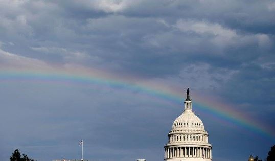 Cầu vồng trên đồi Capitol ở Washington, Mỹ hôm 24-7. Ảnh: Reuters