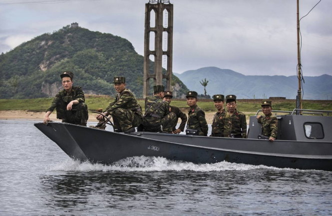 Binh sĩ Triều Tiên di chuyển trên sông Áp Lục - biên giới tự nhiên với Trung Quốc