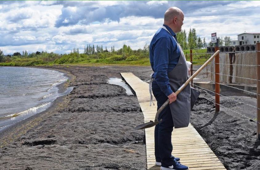 Một tay cầm xẻng sắt, một tay xách theo xô bột bánh đã nhào kỹ, ông Hilmarsson tiến tới bãi nướng bánh để biểu diễn phương pháp độc đáo của mình. Ông đào một cái hố trên bãi đá cuội, chỉ chốc lát sau, trong hố đã ngập đầy nước đang sôi sục.