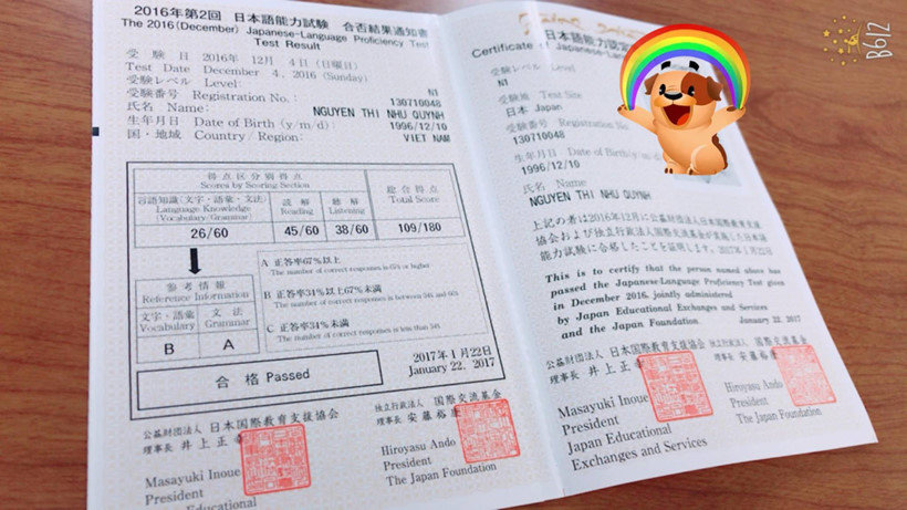 Quỳnh thi đậu chứng chỉ N1, đây là cấp bậc cao nhất với người học tiếng Nhật và số lượng người đạt được cấp này là rất ít