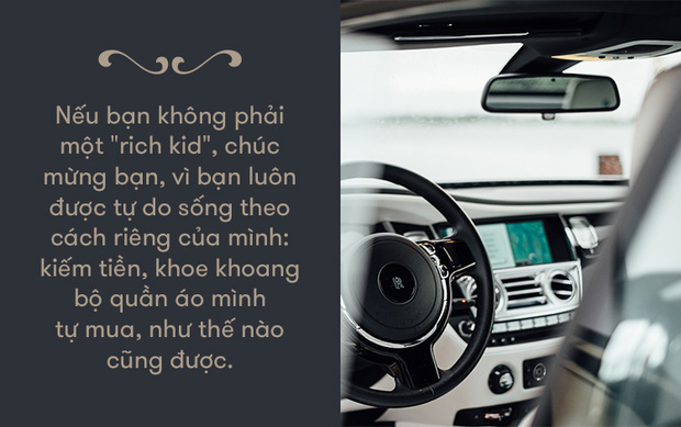 Và nếu bạn không phải một "rich kid", chúc mừng bạn, vì bạn luôn được tự do sống theo cách riêng của mình: kiếm tiền, khoe khoang bộ quần áo mình tự mua, như thế nào cũng được. Vì bạn có quyền.