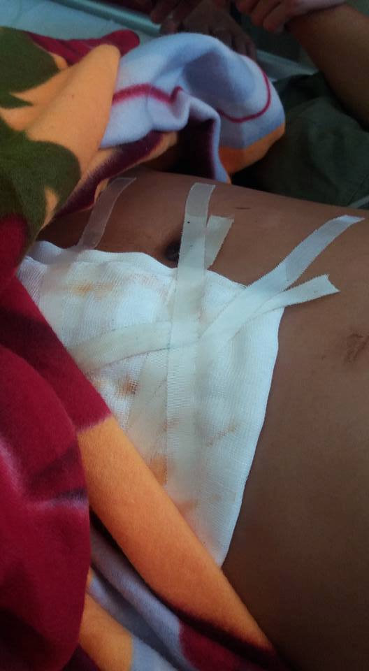 Ông Tưởng được bệnh viện phẫu thuật, đưa hộp sọ xuống vùng bụng chờ ghép lại