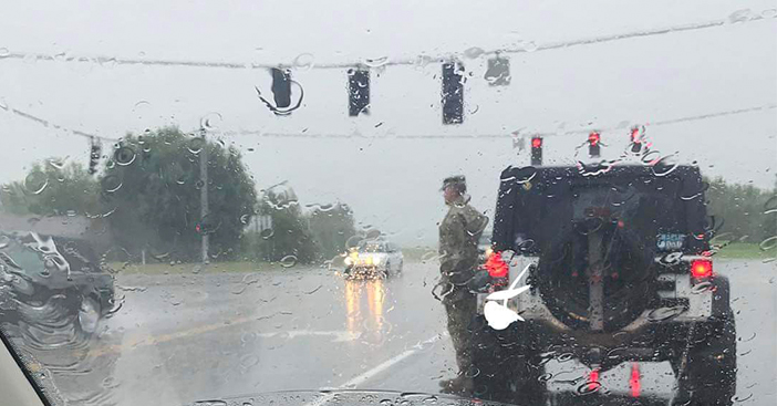 Chắc hẳn đã từ rất lâu rồi Erin mới lại có cơ hội chứng kiến cảnh tượng như thế này. Cô nhanh chóng chụp lại khoảnh khắc trang nghiêm đó, bởi nó đã khiến buổi chiều mưa gió tồi tệ này trở nên đặc biệt và ý nghĩa hơn rất nhiều. Erin Hester đã đăng tải bức ảnh quý giá lên Facebook cá nhân để chia sẻ với bạn bè những cảm xúc đẹp mà cô có được trong buổi chiều hôm đó.
