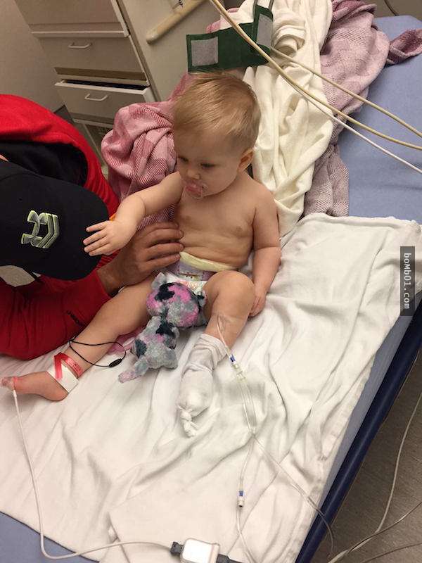 Mặc dù thuốc giảm đau nhanh chóng mang lại hiệu quả, nhưng một vài ngày sau khi thay tã cho con, cô vô cùng hốt hoảng khi nhìn thấy phân của cô bé chỉ có một màu đen kịt. Becky nhanh chóng đưa con gái đến bệnh viện. Các bác sĩ cho biết cô bé bị chảy máu trong, gan bị tổn thương nghiêm trọng.