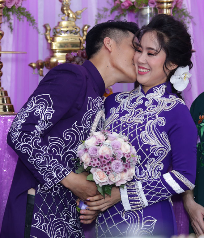Sau nhiều ngày chuẩn bị, sáng 8/8, Lê Phương và chồng trẻ kém 7 tuổi đã tổ chức đám cưới tại quê nhà Trà Vinh. Bối cảnh tiệc cưới của cặp đôi được trang hoàng theo tông màu tím, đây cũng là màu yêu thích của Lê Phương.