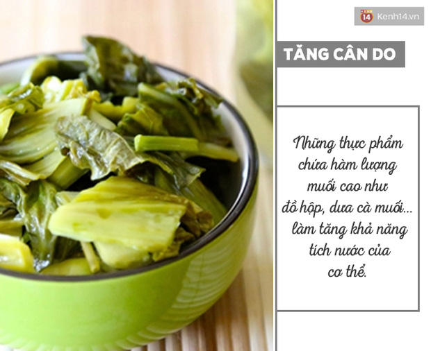 Cơ thể bị tích nước là một trong những nguyên nhân khiến cân nặng thay đổi. Những biểu hiện thường thấy khi gặp phải tình trạng trên có thể kể đến như phù ở mặt, tay hoặc chân. Do đó, hạn chế dùng những thực phẩm chứa nhiều muối và điều chỉnh loại gia vị này trong mỗi bữa ăn sẽ giúp bạn loại bỏ được tình trạng trên.