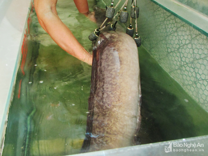 Thật may mắn, một ngư dân đã may mắn bắt được con cá lệch dài 2m, nặng 18kg trên sông Lam, đoạn giáp ranh giữa huyện Con Cuông và Tương Dương.