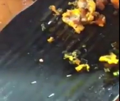 Dòi sống lổn nhổn bò ra từ dĩa sụn gà chiên. Ảnh cắt lại từ clip