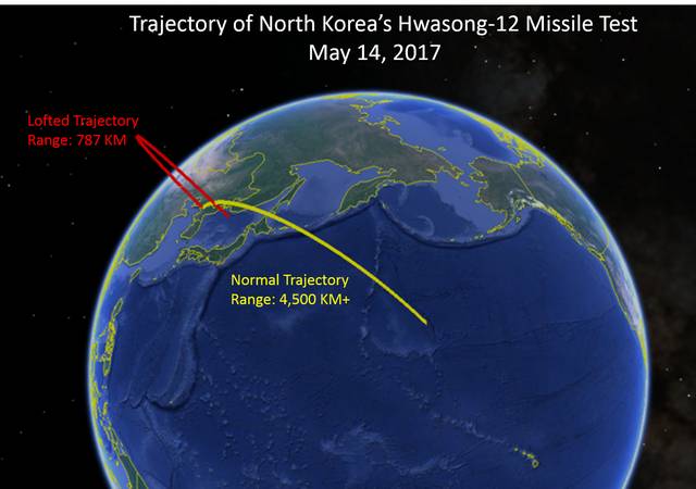 Giới chuyên gia cho rằng, Hwasong-12 có tầm bắn thực tế ít nhất 4.500km. (Ảnh: NTI)