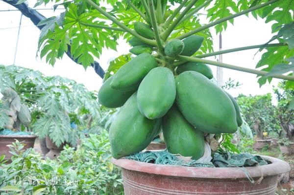 Thông thường mỗi cây chỉ cao hơn 1 mét nhưng cho ra hàng chục trái đu đủ rất đều nhau.
