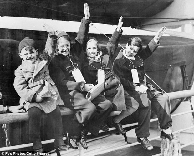 Những em bé Do Thái vẫy tay chào phóng viên khi đã tới nước Anh.