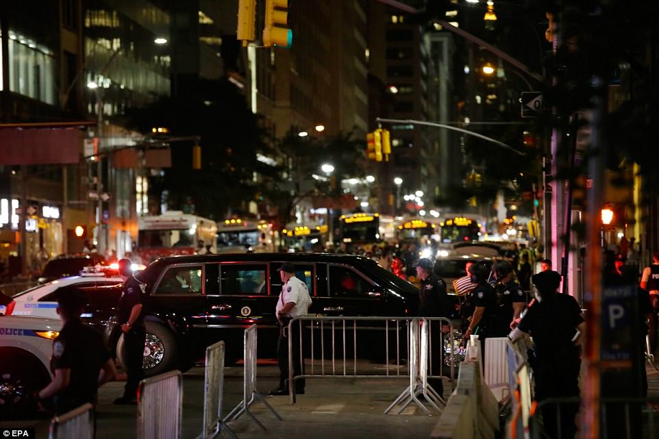 Daily Mail đưa tin, chiếc Không lực Một chở ông Trump đã hạ cánh xuống thành phố New York vào khoảng 21h10 (giờ địa phương). Sau đó ông đã được trực thăng đưa tới một bãi đỗ gần phố Wall, phía nam Manhattan rồi ngồi lên xe để tới tháp Trump.