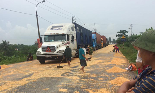 Old  Default Xấu hổ dân VN lao vào tranh cướp hàng tấn ngô rơi từ container dù tài xế van xin