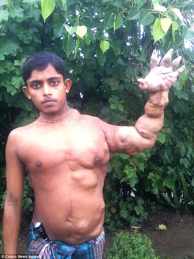 Rajib Gain, 19 tuổi, sống tại Sathkira, Bangladesh, mắc phải chứng bệnh bí ẩn khiến một nửa cơ thể, đặc biệt là cánh tay trái bị biến dạng vì những khối u. Chúng bắt đầu xuất hiện từ khi Rajib mới ba tháng tuổi và không ngừng phát triển khiến anh gặp rất nhiều khó khăn trong cuộc sống và sinh hoạt.