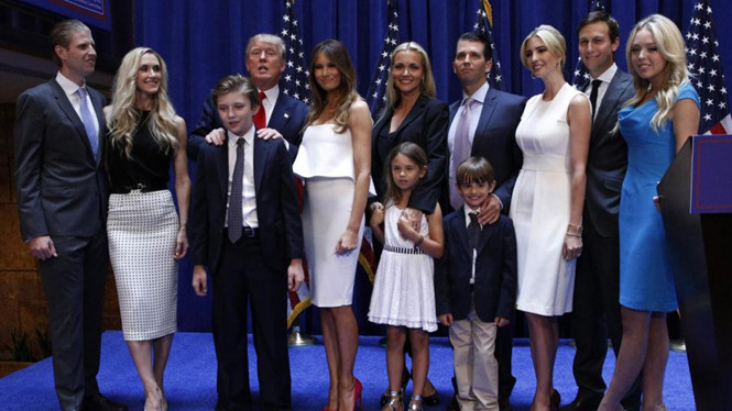 Một phần gia đình đông đúc 18 thành viên của tổng thống tân cử Donald Trump. Tất cả đều được bảo vệ an ninh cẩn mật
