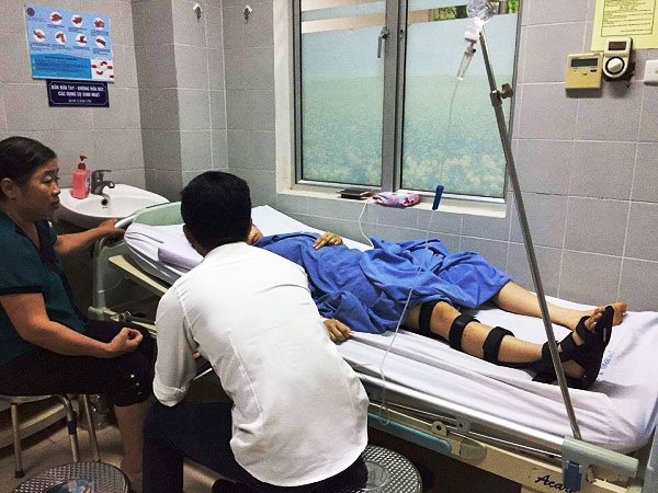 Trang đã được mổ ghép xương đùi ngày thứ Hai. Vũ Quỳnh Trang đang sống ở quận Thanh Xuân, làm kế toán cho một công ty ở Hưng Yên.