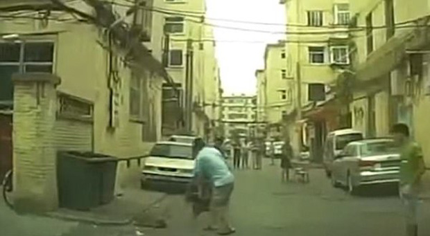 Sự việc mới xảy ra tại khu dân cư thuộc địa phận thành phố Thái Nguyên, tỉnh Sơn Tây, Trung Quốc và được ghi lại bởi máy quay giám sát hành trình trên một chiếc xe hơi.