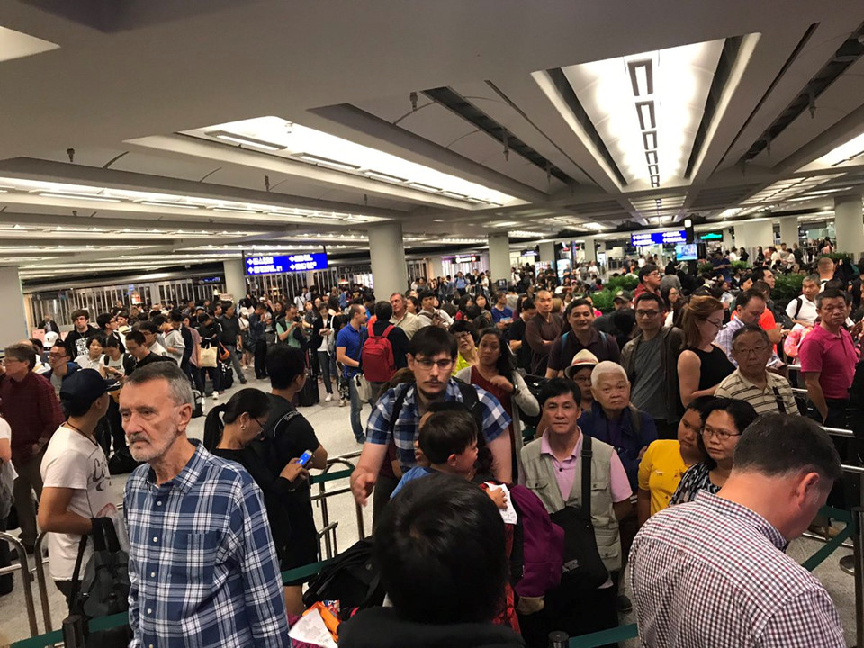 Hàng nghìn người đổ xô tới sân bay quốc tế Hong Kong trong chiều 23/8. Ảnh: Twitter.