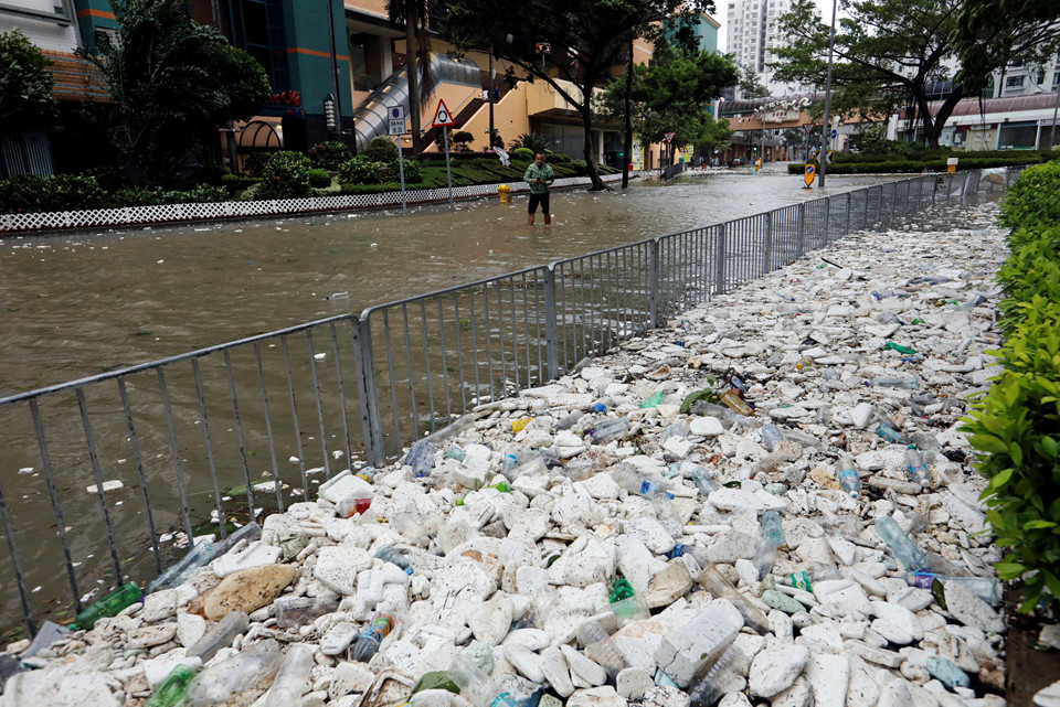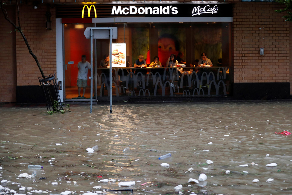 Chính quyền Hong Kong đã nâng mức báo động lên cấp 10, cấp cao nhất trong thang cảnh báo bão của đặc khu hành chính này. Đây mới là lần thứ 15 trong lịch sử Hong Kong đưa ra cảnh báo bão cấp 10. Trong ảnh, đường phố Hong Kong ngập nước sau bão Hato. Ít nhất 12 người đã thiệt mạng vì bão Hato. Ảnh: Reuters.