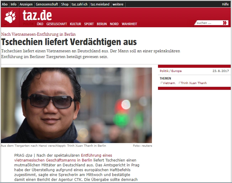 Link nhật báo TAZ của Đức: http://taz.de/Nach-Vietnamesen-Entfu...rlin/!5441528/ ( sau đó bạn bấm nút ``Gerade nicht/continue readingSchon dabei!`` để xem được nội dung báo TAZ)