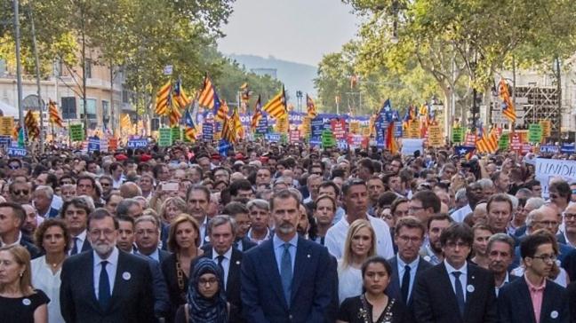Hàng trăm ngàn người ở Barcelona đã diễu hành phản đối chủ nghĩa Hồi giáo cực đoan chiều tối ngày 26/8 (giờ địa phương), sau hai vụ tấn công tại khu vực vào tuần trước khiến 15 người tử vong, theo BBC.
