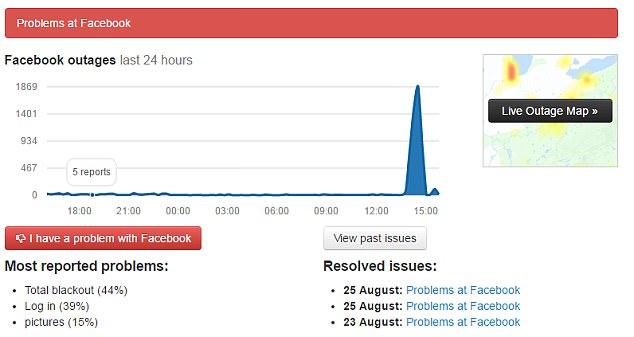 Vào lúc đỉnh điểm, có hơn 1.899 trường hợp cho biết họ gặp vấn đề khi cố gắng đăng nhập vào tài khoản Facebook. Hàng nghìn cư dân mạng đã dùng Twitter để chia sẻ về sự cố trên Facebook, theo Daily Mail.