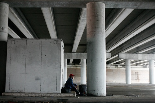 Một số người vô gia cư ở Houston từ chối đi tránh siêu bão. Họ sợ mất đồ đạc và không tìm được về chỗ cũ. Ông Roy Joy Cox ngồi co ro vì thích ngủ chỗ giữa bột điện và trụ cầu.