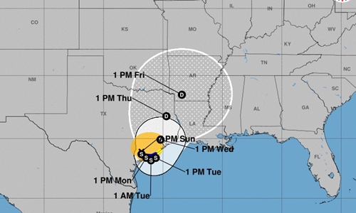 Dự báo đường đi của bão Harvey.