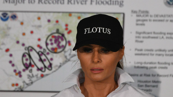 Vợ chồng Tổng thống Trump đến thăm vùng chịu ảnh hưởng của bão Harvey. Đệ nhất phu nhân Mỹ Melania Trump gây chú ý với chiếc mũ in chữ FLOTUS. Đặc biệt, bà đã ăn mặc phù hợp với hoàn cảnh hơn.