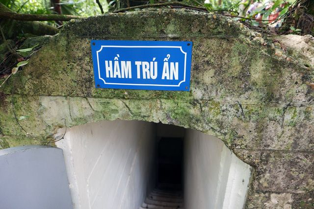 Hầm trú ẩn được bố trí cách "Nhà sàn" khoảng 10m, nguỵ trang khuất dưới những tán cây cổ thụ.