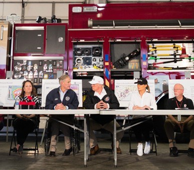Bà Trump (thứ hai bên phải) mang giày đế bằng mềm màu trắng trong cuộc gặp với các quan chức Texas. Ảnh: NHÀ TRẮNG