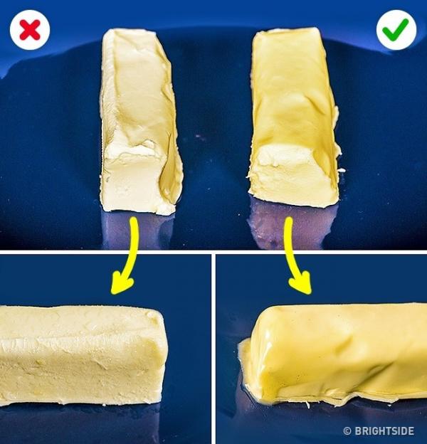 Phân biệt bơ động vật và thực vật: Đặt một miếng bơ vào nước sôi. Nếu nó tan chảy nhanh và tạo thành một lớp trên bề mặt nước, đó là bơ thực vật.
