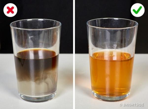 Sữa: Để phát hiện sữa giả, trộn nó với sữa tinh khiết theo tỷ lệ 1:2. Sữa có chất lượng tốt sẽ xuất hiện váng sau 5-7 giây, sữa giả sẽ mất nhiều thời gian hơn.