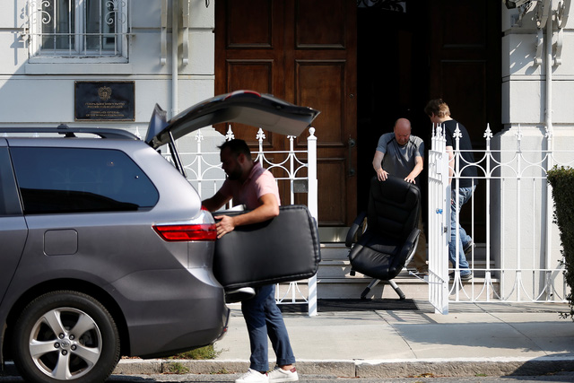 Các nhân viên Tổng lãnh sự quán Nga tại San Francisco, bang California (Mỹ) chuyển đồ đạc đi trong ngày 2-9