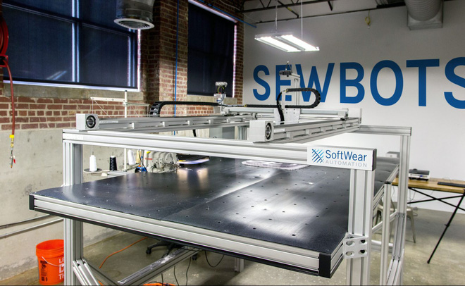 Vào năm 2015, sau thời gian nghiên cứu, SoftWear Automation đã giới thiệu robot “may vá” mang tên Lowry sử dụng cảm biến để phát hiện và điều chỉnh sự thay đổi của các tấm vải. Mặc dù ban đầu cỗ máy chỉ tạo ra những sản phẩm đơn giản như khăn tắm, nhưng nay công nghệ đã được được nâng tầm để có thể hoàn thiện một bộ áo phông hoặc quần jean. Công ty tuyên bố, Lowry vận hành hiệu quả và nhanh hơn nhiều so với dây chuyền con người.