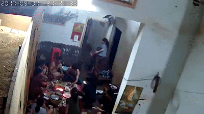 Theo như camera trong nhà ghi lại được, gia đình khoảng gần 10 người đang ngồi chiếu và ăn lẩu nấu bằng bếp ga mini thì bất ngờ bình ga phát nổ. Sau tiếng nổ lớn, bấp mini và những vật dụng xung quanh cũng bị cháy.